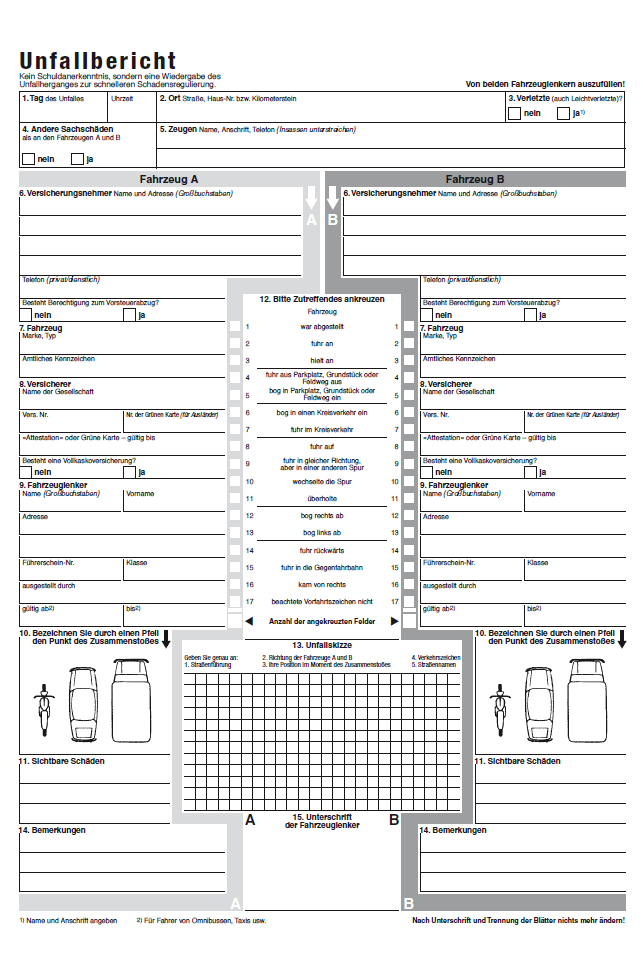 • Europäischer Unfallbericht